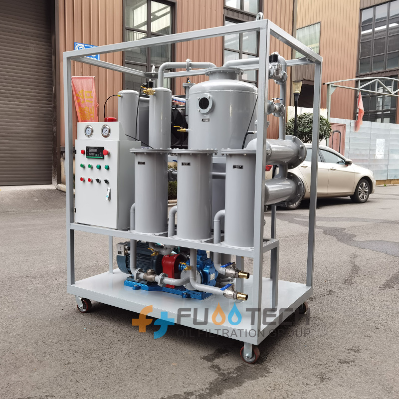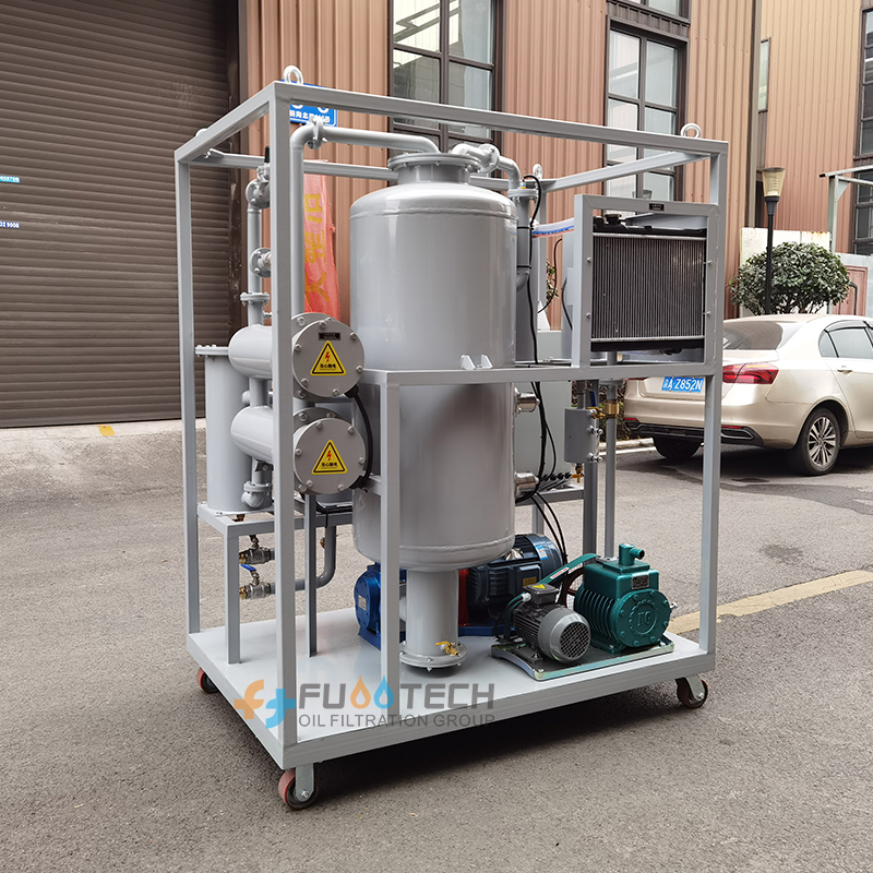 The free water quickly forms water vapor and passes through the coalescence separation device (mainly using lipophilic and hydrophobic high-tech materials), The main purpose is to allow the oil to pass smoothly and the water to be automatically separated; for dissolved water and emulsified water, a high score is used. Sub-emulsification system, German three-dimensional flash evaporation technology, for micro water, an atomization generating device, three-dimensional Three-dimensional evaporation device, thin film vaporization, Bowel surface expansion device, truly realize binary one-time dehydration and rapid separation The water in the oil is separated and deeply dehydrated, reaching ≤5PPM.